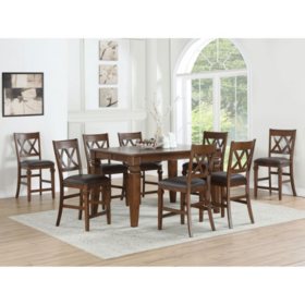 The members mark aldridge 9 piece dining set table measures 60 x 60 with the leaf inserted. 46 out of 5 stars 2 ratings 7 answered questions price. Over the course of a hectic day or week it may be the only time your family sits down together which is why youre in the market for an adequate space for your family to have a great meal. A brace connects the columns at the foot.